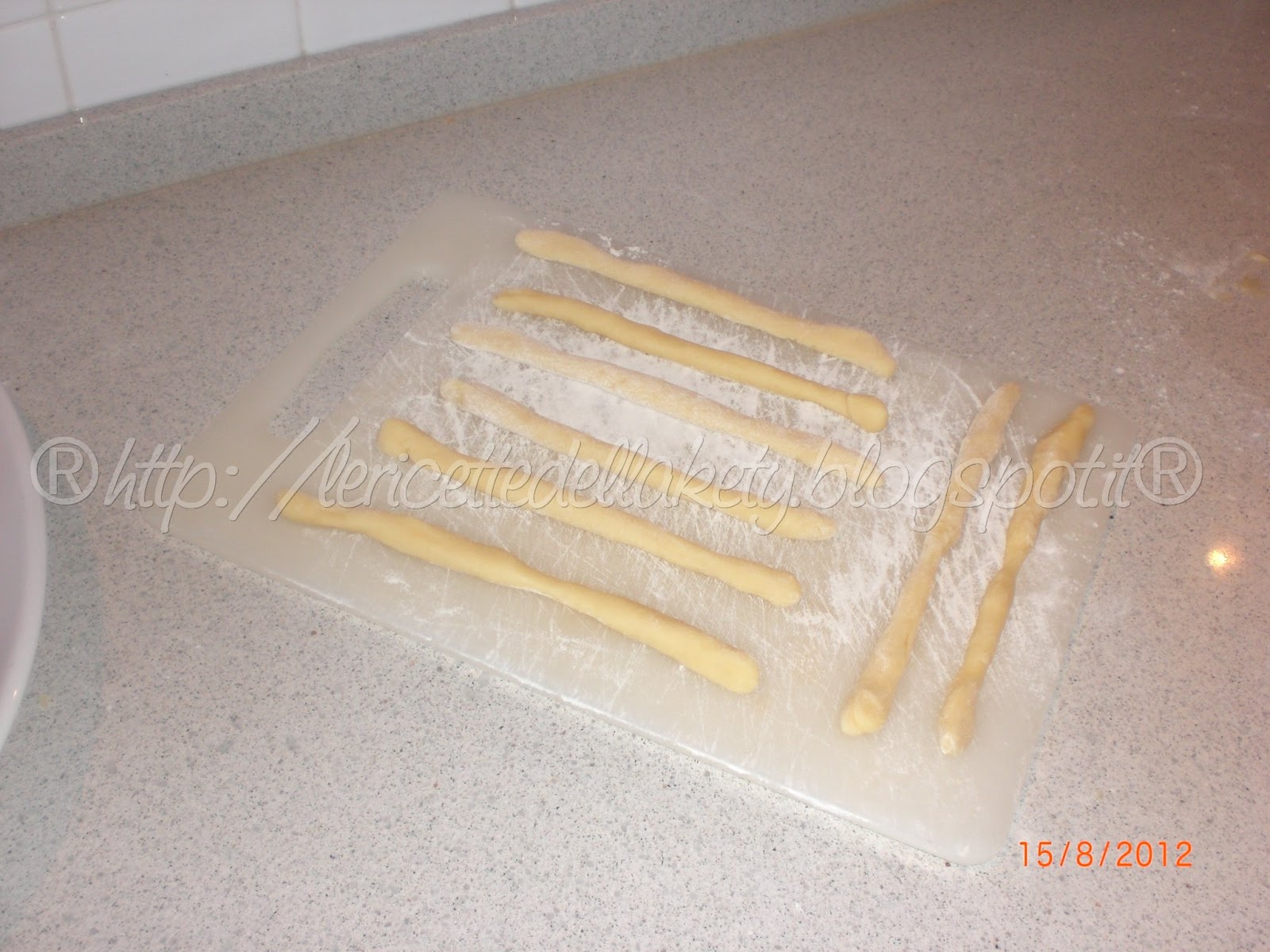 Spolverizzate il piano di lavoro con della farina e lavorate ogni porzione con le dita, fino a formare tanti piccoli cilindri di pasta...